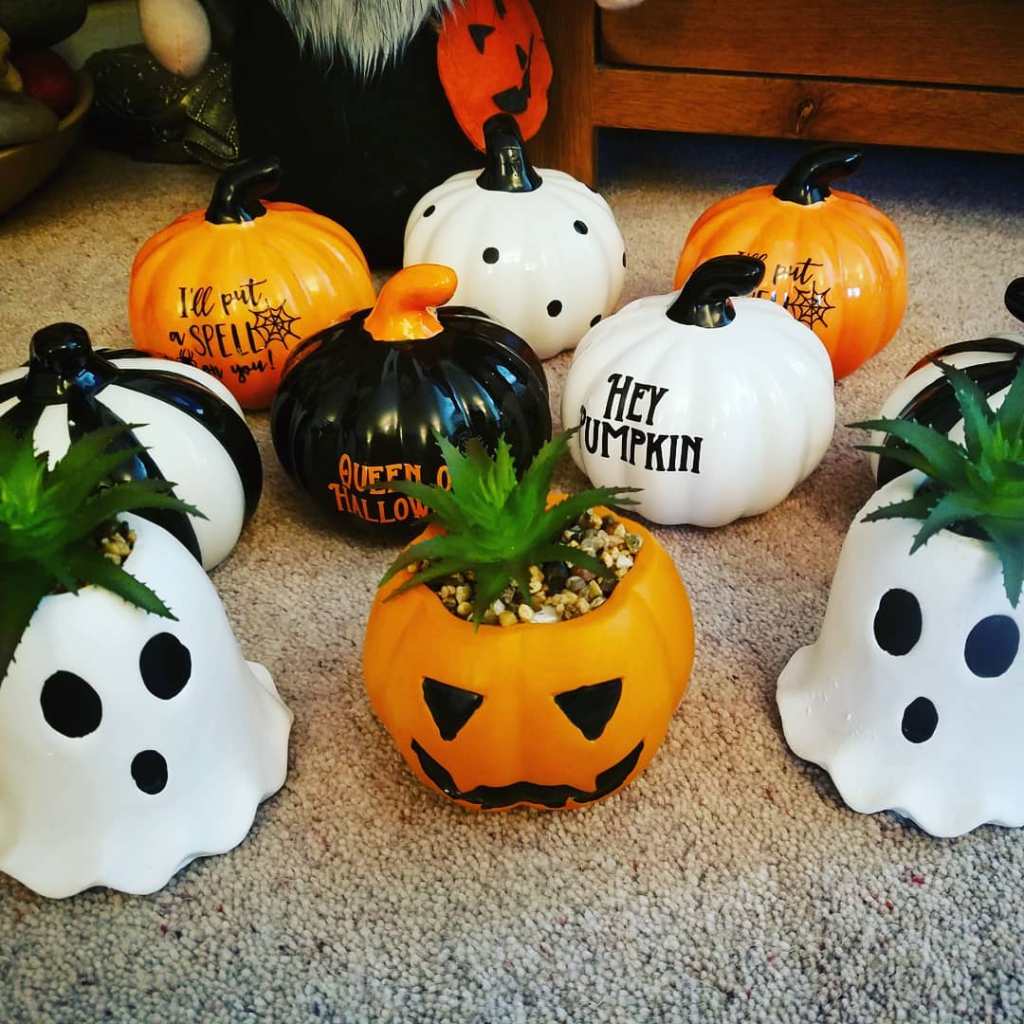 Ghost & Pumpkin plants, Ceramic pumpkins, Poundland