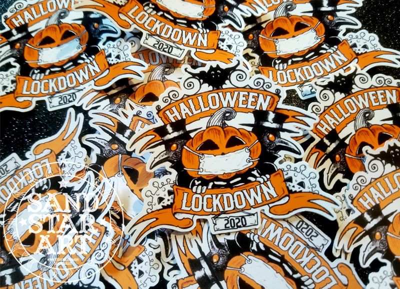 To coincide with this tragedy I created a sticker featuring a pumpkin in a mask, flanked by some plague doctors and a couple of those pesky Covid-19 germs. I thought it would be a good way to remember Halloween 2020 if you’re doing a scrapbook, etc